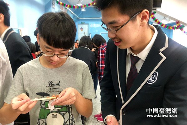 中國臺灣網(wǎng)1月22日北京訊 (記者 楊旋)唱京劇、畫臉譜、寫春聯(lián)、猜字謎、包餃子……由海峽兩岸交流中心與中華青年發(fā)展聯(lián)合會共同組織的“臺灣學(xué)生寒假北京參訪團(tuán)”一行41人,于22日上午來到了北京市海淀實驗中學(xué),與那里的師生一起,提前過了個精彩紛呈又獨具特色的“中國年”。
