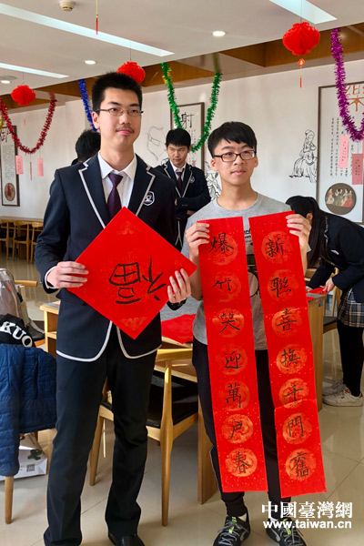 兩岸青年展示各自寫的春聯(lián)。(中國臺灣網(wǎng) 楊旋 攝)