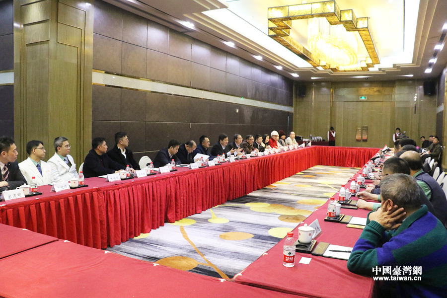 龍明彪與在湘臺商、臺籍師生、創(chuàng)業(yè)臺青等代表座談。(中國臺灣網(wǎng) 高斯斯 攝)