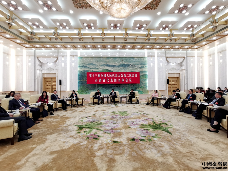 十三屆全國(guó)人大二次會(huì)議臺(tái)灣省代表團(tuán)舉行全體會(huì)議并向媒體開放。(中國(guó)臺(tái)灣網(wǎng) 尹賽楠 攝)