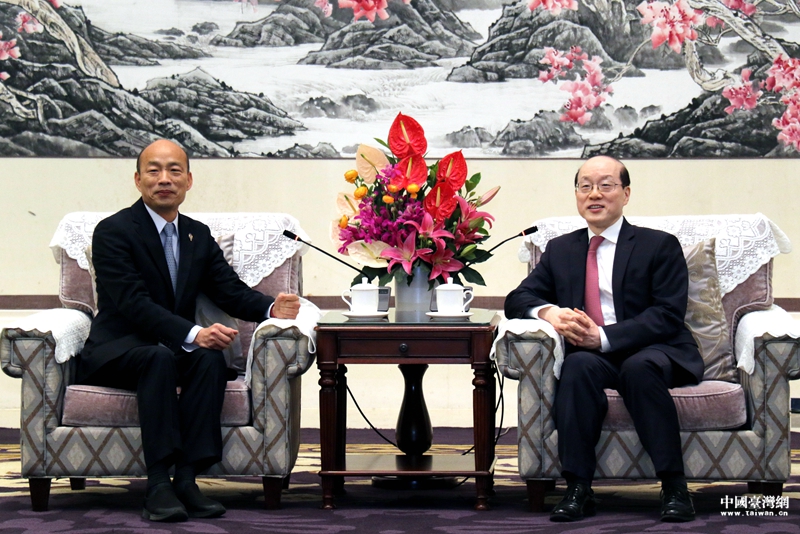 中共中央臺辦、國務(wù)院臺辦主任劉結(jié)一在深圳會見了高雄市長韓國瑜率領(lǐng)的高雄市參訪團(tuán)一行。(中國臺灣網(wǎng) 尹賽楠 攝)