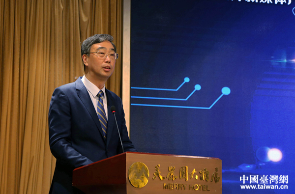 上海市臺(tái)辦副主任李驍東致辭。(上海市靜安區(qū)臺(tái)辦供圖)
