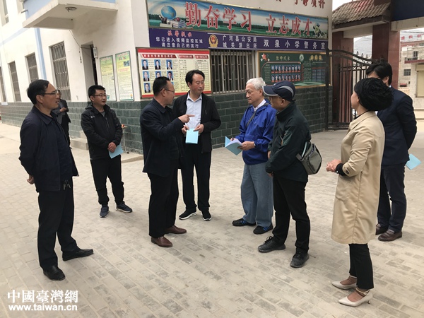 中國臺(tái)灣網(wǎng)5月17日訊 5月15日,臺(tái)灣知名企業(yè)臺(tái)塑集團(tuán)黃家祺先生、長庚大學(xué)校長包家駒先生一行來到甘肅省臨夏州廣河縣,對(duì)2004年以來集團(tuán)捐助修建的17所“明德小學(xué)”進(jìn)行考察,實(shí)地走訪了6所學(xué)校并與縣教育局商討了下一步捐贈(zèng)修繕規(guī)劃。中央臺(tái)辦掛職干部、常委副縣長李楊同志陪同調(diào)研。