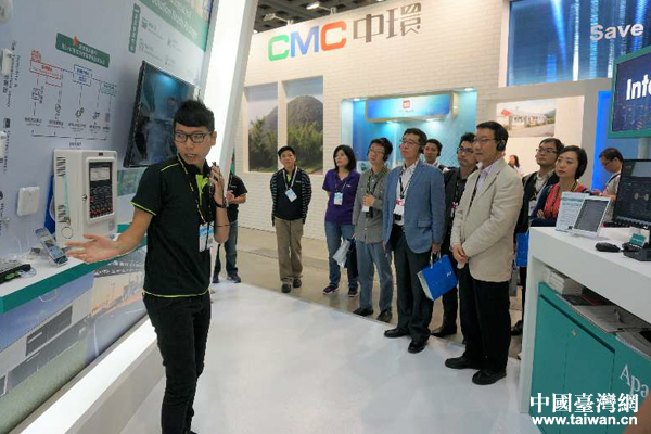 機(jī)電商會(huì)臺(tái)北辦事處主任李榮民(右1)、副主任高偉等參觀展覽(右2)。(中國(guó)臺(tái)灣網(wǎng)發(fā) 機(jī)電商會(huì)臺(tái)北辦事處供圖)