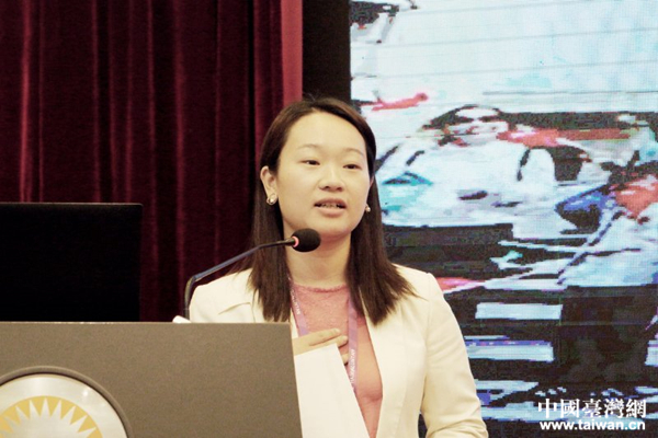 澳門(mén)特別行政區(qū)立法會(huì)議員、澳門(mén)婦女聯(lián)合總會(huì)副理事長(zhǎng)黃潔貞作分享、交流。(中國(guó)臺(tái)灣網(wǎng) 李奕均 攝)