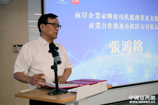 兩岸企業(yè)家峰會現(xiàn)代服務(wù)業(yè)及文創(chuàng)產(chǎn)業(yè)合作推進小組陸方召集人張鴻銘在啟動儀式上致辭。(中國臺灣網(wǎng) 王亮 攝)