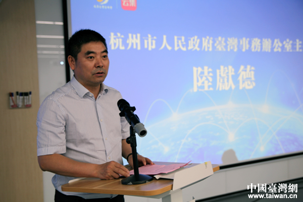 杭州市臺辦主任陸獻德在啟動儀式上致辭。(中國臺灣網(wǎng) 王亮 攝)