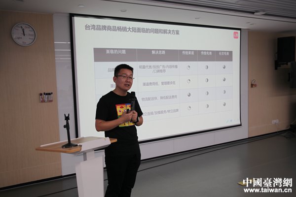 云集高級(jí)副總裁張鐵成做題為《社交電商助力臺(tái)灣產(chǎn)品行銷大陸》演講。(中國(guó)臺(tái)灣網(wǎng) 王亮 攝)