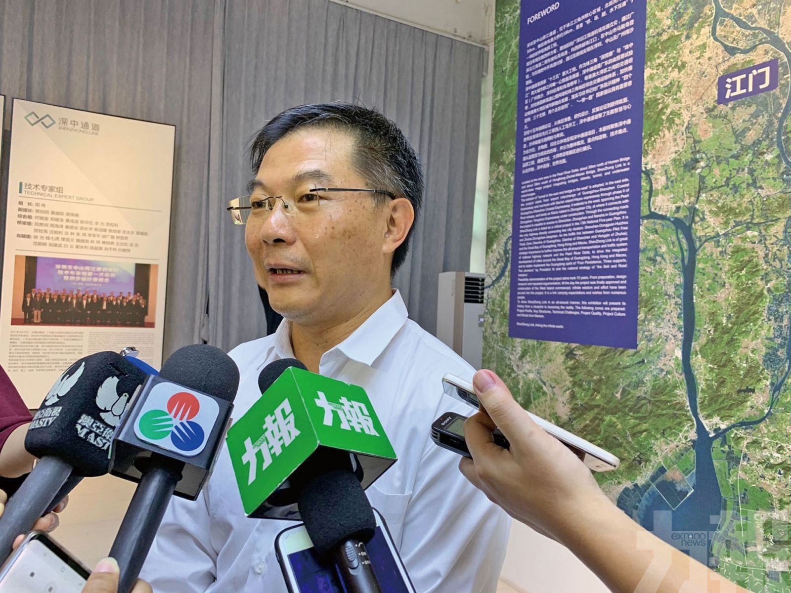 副總工程師陳越介紹,深中通道通車后,澳門前往深圳的陸路交通時間可望縮短至約一個小時。 (劉艷萍攝)