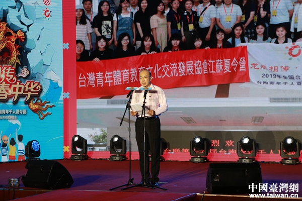 中共中央候補委員、全國人大常委、全國臺聯(lián)會長黃志賢宣布“2019年臺胞青年千人夏令營正式開營”并授夏令營總營旗。(中國臺灣網(wǎng) 李航 攝)