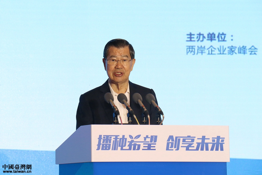 兩岸企業(yè)家峰會臺灣方面理事長蕭萬長在開幕式上致辭。(中國臺灣網(wǎng) 尹賽楠 攝)