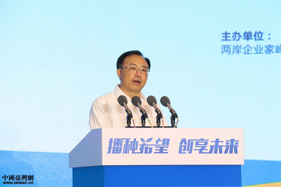 兩岸企業(yè)家峰會大陸方面理事長郭金龍在開幕式上致辭。(中國臺灣網(wǎng) 尹賽楠 攝)