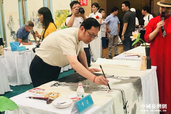 4日下午,兩岸武術(shù)家、書畫家、武術(shù)愛好者共計160余人在北京月壇綜合訓練館武術(shù)文化交流中心參加了盛大的“武藝天下”武術(shù)書畫攝影交流活動。此次活動的亮點是專門創(chuàng)作的長達12米的“荷和溢美”畫卷,由中國職工書法家協(xié)會理事、國臺辦兩岸交流中心苗京平及臺灣著名收藏家鄭宗坤題字,與會所有嘉賓行印留念,成為海峽兩岸交流和親情的印證。