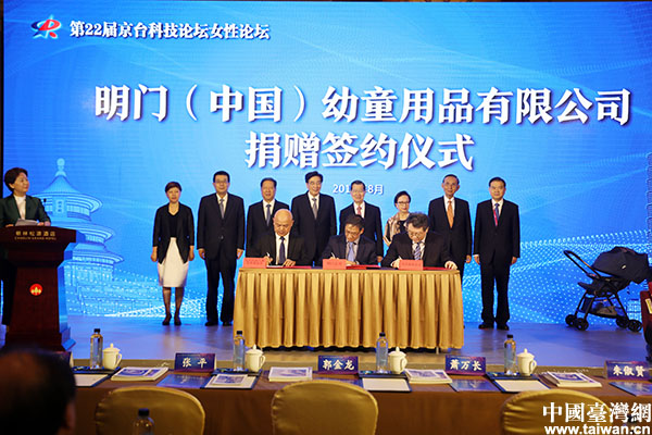 本次論壇由一場(chǎng)高規(guī)格的捐贈(zèng)儀式揭開了序幕。通過(guò)女性論壇的平臺(tái),臺(tái)資企業(yè)明門(中國(guó))幼童用品有限公司向中國(guó)宋慶齡基金會(huì)捐贈(zèng)40集裝箱兒童安全用品,向北京婦女兒童發(fā)展基金會(huì)捐贈(zèng)60集裝箱兒童安全用品。這場(chǎng)特殊的捐贈(zèng)既體現(xiàn)了京臺(tái)婦女兒童事業(yè)的融合發(fā)展,也彰顯了“血濃于水,守望相助”的同胞深情。兩岸企業(yè)家峰會(huì)大陸方面理事長(zhǎng)郭金龍、副理事長(zhǎng)張平,兩岸企業(yè)家峰會(huì)臺(tái)灣方面理事長(zhǎng)蕭萬(wàn)長(zhǎng)及夫人朱俶賢、副理事長(zhǎng)邱正雄、秘書長(zhǎng)陳瑞隆,中國(guó)宋慶齡基金會(huì)副主席井頓泉、北京市委常委齊靜、明門(中國(guó))幼童用品有限公司董事長(zhǎng)鄭欽明等領(lǐng)導(dǎo)和嘉賓出席并見證了捐贈(zèng)儀式。北京市婦聯(lián)主席張雅君主持捐贈(zèng)儀式。