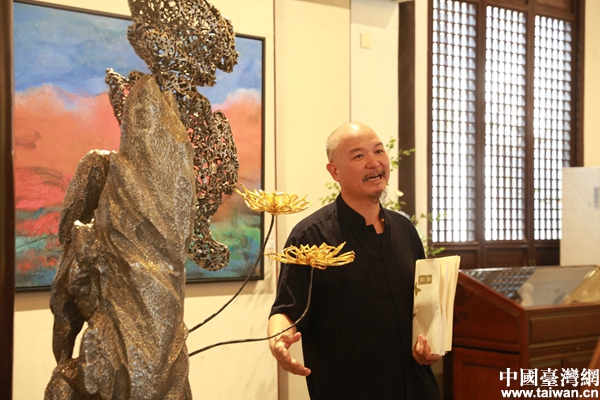用毛筆畫油畫,用草書做雕塑 臺(tái)灣書畫藝術(shù)家在蘇辦展迎中秋