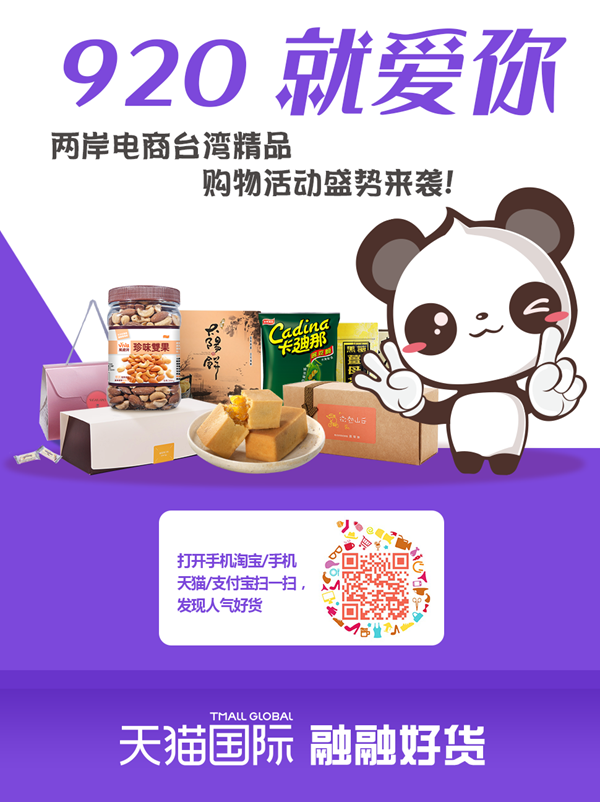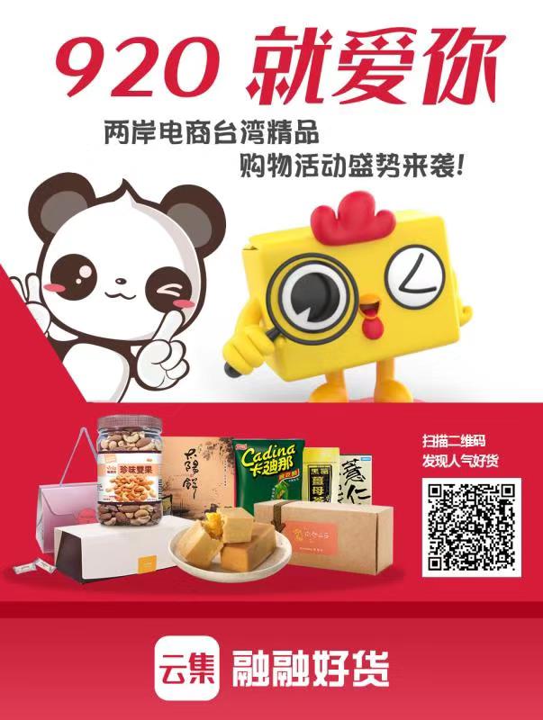 “920就愛你”兩岸電商臺灣精品購物活動由天貓國際、云集和中國臺灣網(wǎng)融融好貨等兩岸電商協(xié)作聯(lián)盟發(fā)起單位攜手推出,旨在打造成一個可以比肩“雙十一”的臺灣優(yōu)質(zhì)、特色產(chǎn)品的購物“狂歡節(jié)”。