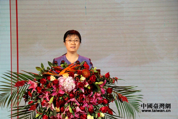 泰安市人民政府副市長(zhǎng)成麗在論壇致辭。 (中國臺(tái)灣網(wǎng) 全志強(qiáng) 攝)