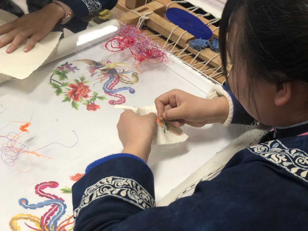 學(xué)生周海霞正在做刺繡作品。新華社記者孟佳 攝