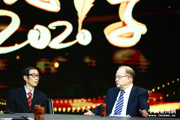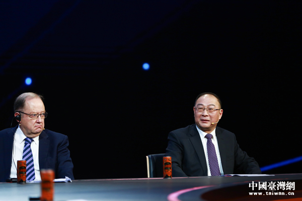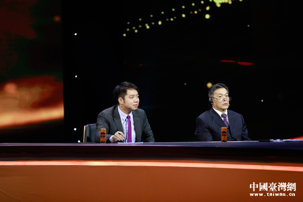復(fù)旦大學(xué)中國研究院研究員、東南衛(wèi)視《中國正在說》節(jié)目主持人鄭若麟(中)。(中國臺灣網(wǎng)發(fā))