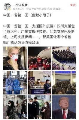 大概是受此啟發(fā)吧,對AIT的這份“聲明”,有大陸網(wǎng)民說出了“一省包一國,臺灣包美國”。但誰都看得出來,這是在調(diào)侃、嘲諷。其中原因,無需多說,大家都明白。真有不明白的,翻一翻新聞報(bào)道,看看疫情發(fā)生以來美國和臺灣民進(jìn)黨當(dāng)局都做了些什么,自然就明白了。
