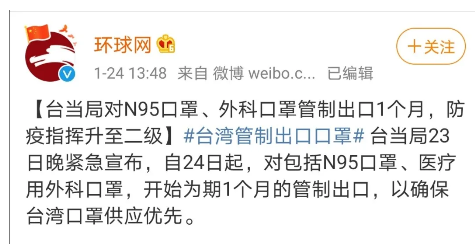 意思是,臺灣還處于“口罩出口禁令”期。