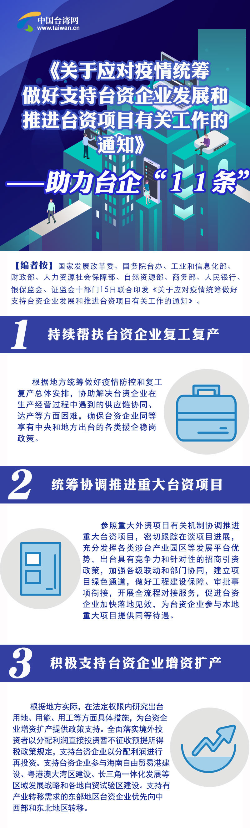 《關(guān)于應(yīng)對疫情統(tǒng)籌做好支持臺資企業(yè)發(fā)展和推進(jìn)臺資項目有關(guān)工作的通知》發(fā)布實施