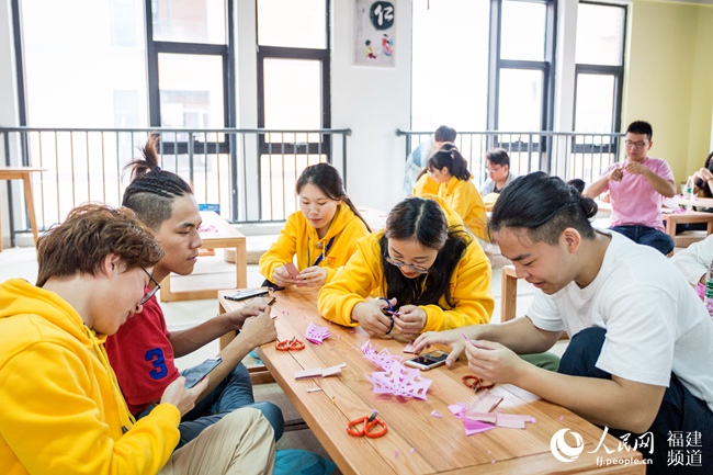兩岸青年在“兩岸國學(xué)營”體驗剪紙藝術(shù)。平潭融媒體中心供圖