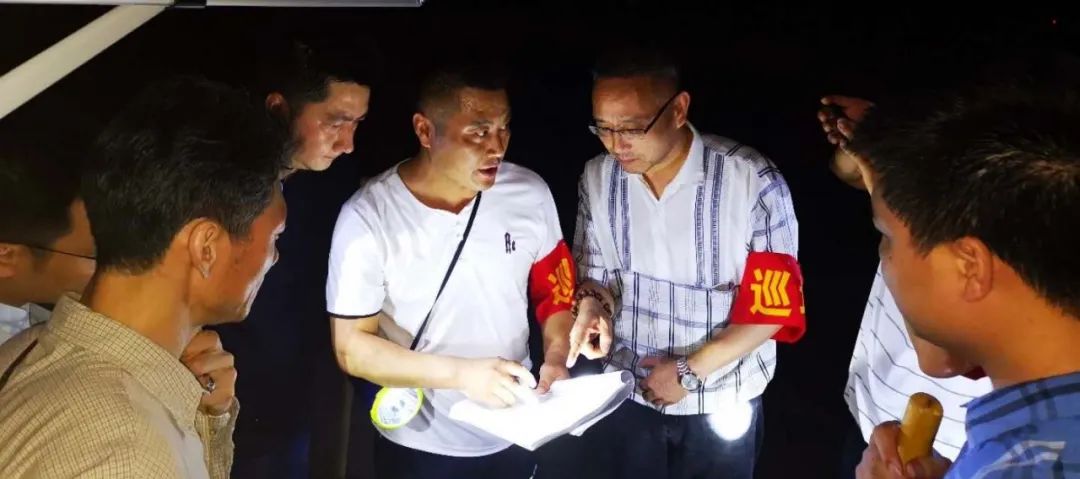 陳安(左五)正在認(rèn)真核對(duì)當(dāng)日白天巡查情況記錄表,做好晚間當(dāng)值交接準(zhǔn)備