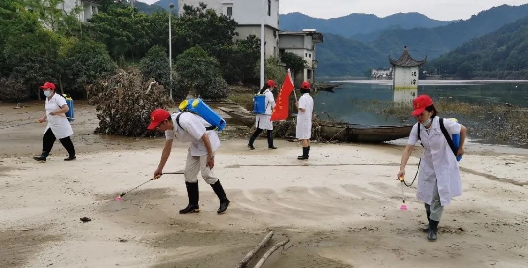 黃山支部主委張光是歙縣深渡醫(yī)院的骨科醫(yī)生,他看到洪水退去后當(dāng)?shù)胤酪叻啦⌒蝿?shì)嚴(yán)峻。在調(diào)研了解需求后,張光立即組織黃山支部盟員聯(lián)合歙縣第二人民醫(yī)院開展災(zāi)后防疫防病工作,深入歙縣深渡鎮(zhèn)漳潭村進(jìn)行災(zāi)后現(xiàn)場(chǎng)防疫消殺,并給當(dāng)?shù)匕傩掌占敖】捣酪咧R(shí)。臺(tái)盟安徽省總支副主委、秘書長王宇靖,副主委江良了解情況后乘火車趕來參加活動(dòng)。