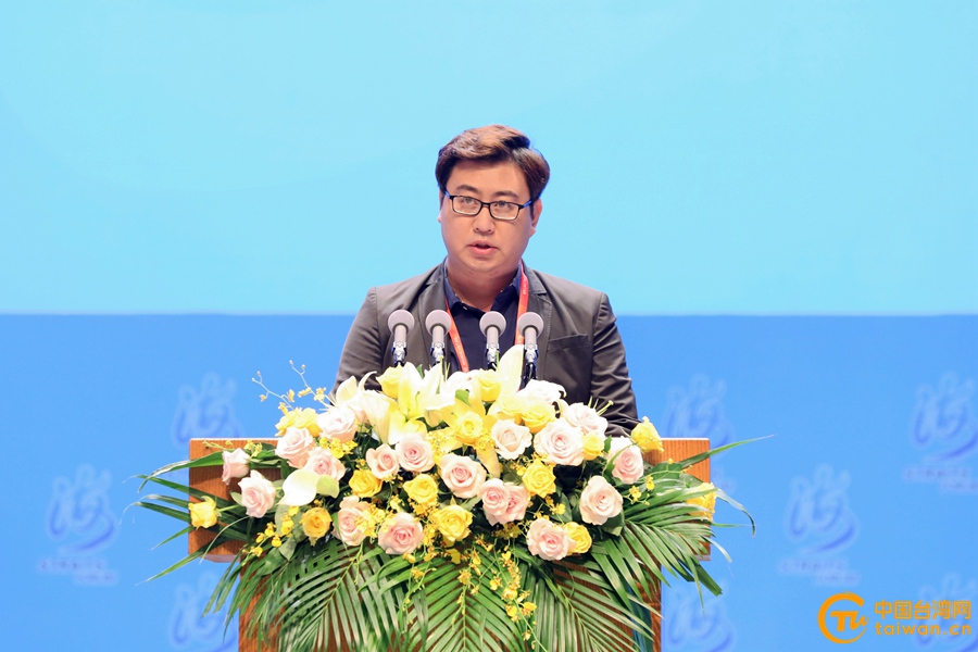 在廈臺(tái)灣青年參與抗疫工作團(tuán)隊(duì)代表陳俊宇在論壇大會(huì)上發(fā)言。(中國臺(tái)灣網(wǎng) 尹賽楠 攝)