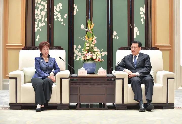 10月12日下午,省委書記袁家軍在杭州會見了中國國民黨前主席、中華青雁和平教育基金會董事長洪秀柱一行。(圖片來源:浙江在線)