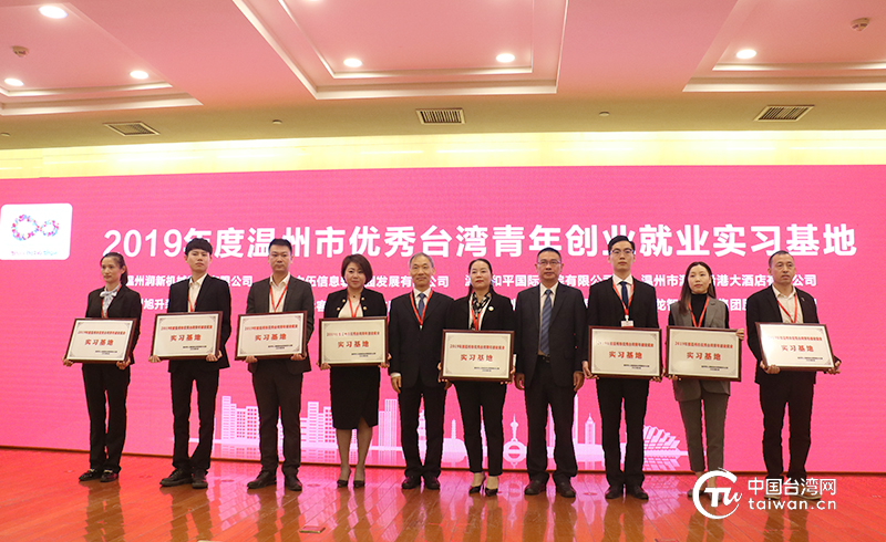 論壇舉行了2019年度溫州市優(yōu)秀臺灣青年創(chuàng)業(yè)就業(yè)實(shí)習(xí)基地授牌儀式。(中國臺灣網(wǎng) 普燕 攝)
