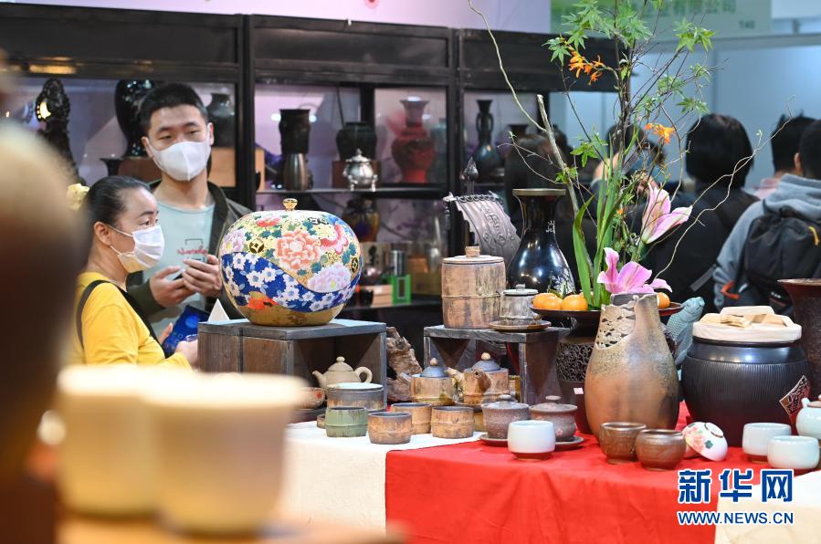 這是11月16日在第十四屆海峽兩岸茶業(yè)博覽會上拍攝的陶瓷藝術(shù)品展位。