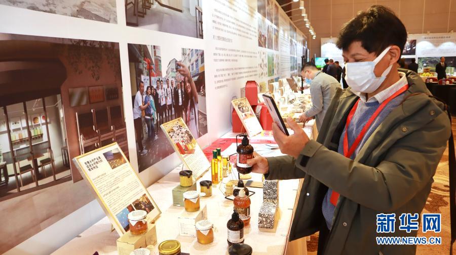 參會嘉賓參觀“同心杯”兩岸青年鄉(xiāng)村振興研修營“文創(chuàng)+”農(nóng)產(chǎn)品(12月5日攝)。