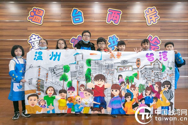 兩岸小畫家們合作的繪畫作品(圖片來源:溫州臺辦提供)