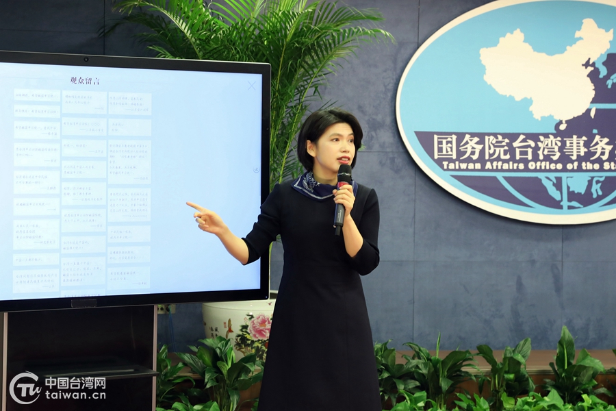 國(guó)臺(tái)辦發(fā)言人朱鳳蓮回答記者提問。(中國(guó)臺(tái)灣網(wǎng) 尹賽楠 攝)
