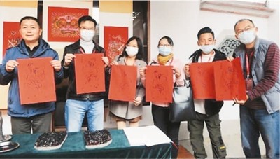 近日福建漳州舉辦的漳臺青年留漳過年活動中,留在當(dāng)?shù)剡^年的臺胞體驗(yàn)印木版年畫。(張金川 攝)