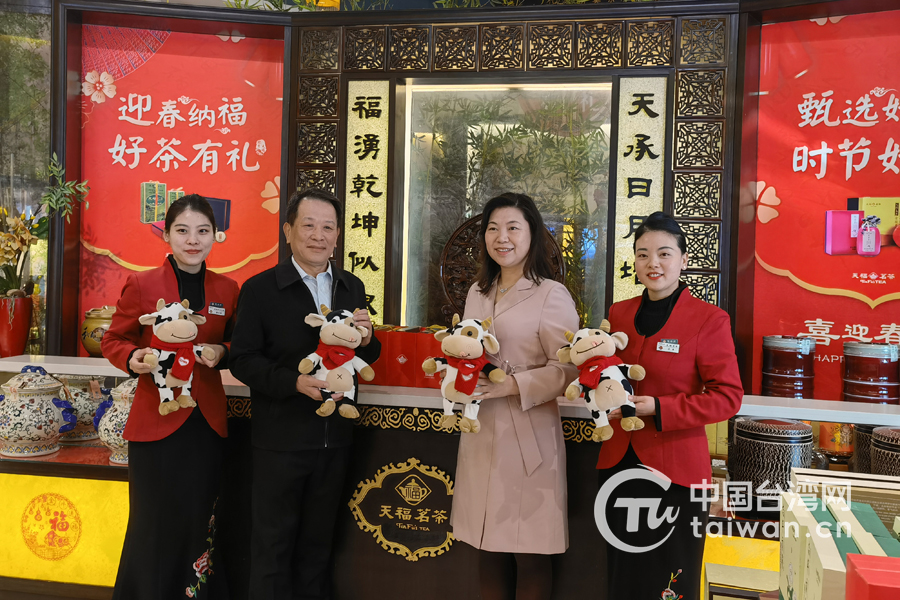2月10日北京市臺辦副主任于鳳英(右二)帶隊(duì)到天福茗茶文化館走訪慰問。(中國臺灣網(wǎng) 吳怡 攝)