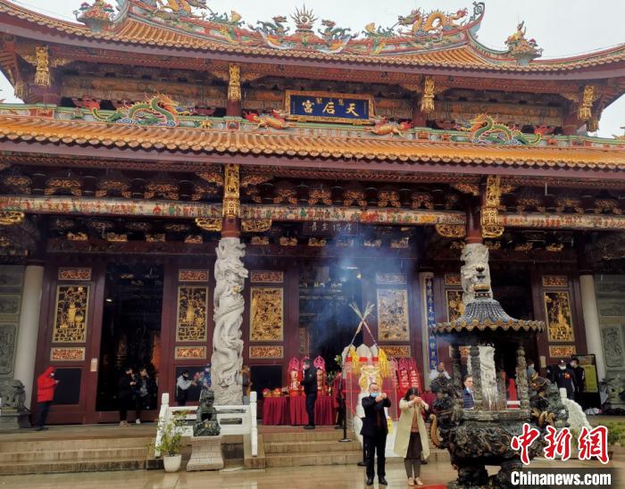 26日,正月十五元宵節(jié)。在江蘇昆山,“就地過年”的臺商臺胞們與當?shù)孛癖娋奂诶ド交劬厶旌髮m,一道拜媽祖、吃炸湯圓,慶祝元宵佳節(jié)。