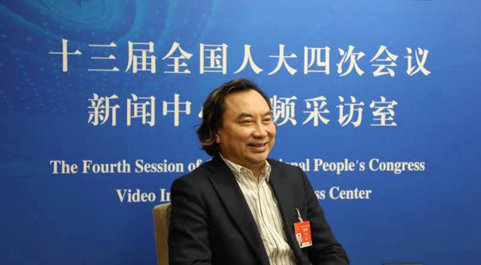 圖為全國(guó)臺(tái)聯(lián)副會(huì)長(zhǎng)楊毅周委員。全國(guó)政協(xié)十三屆四次會(huì)議新聞中心網(wǎng)絡(luò)視頻采訪(fǎng)間供圖