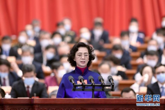 3月7日,全國(guó)政協(xié)十三屆四次會(huì)議在北京人民大會(huì)堂舉行第二次全體會(huì)議。這是吳國(guó)華委員代表臺(tái)盟中央作大會(huì)發(fā)言。新華社記者 丁海濤 攝
