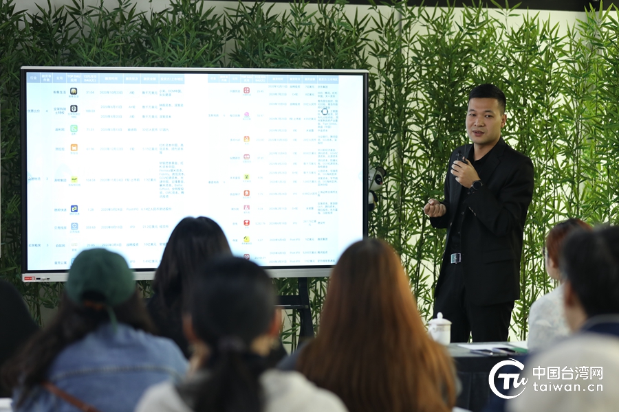 4月25日,由中國(guó)臺(tái)灣網(wǎng)舉辦的海峽兩岸古風(fēng)茶裳直播季·臺(tái)青電商培訓(xùn)進(jìn)行中。圖為發(fā)條學(xué)社CEO、新媒體電商資深從業(yè)者金風(fēng)介紹短視頻與直播電商現(xiàn)狀與趨勢(shì)。(中國(guó)臺(tái)灣網(wǎng) 張亞靜 攝)