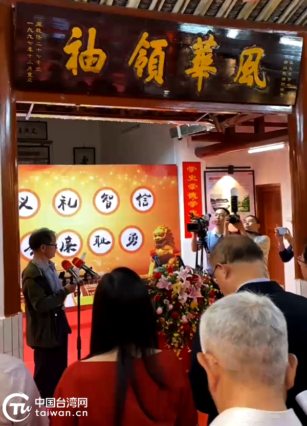 揭幕式上,海協(xié)會副會長孫亞夫、國務(wù)院臺辦交流局一級巡視員王明鑒、梅州市委臺港澳辦主任王忠豪、蕉嶺縣委統(tǒng)戰(zhàn)部副部長鄧汝芬和來自臺灣的辜金良文化基金會董事長藍(lán)博洲等分別致辭。他們一致肯定黃田村墩背徐氏祖堂理事會做了一件很有意義的工作,認(rèn)為由民間自發(fā)舉辦此類展覽,把原本單純紀(jì)念祖宗、追思先人的祠堂,變成了紀(jì)念革命先輩、宏揚(yáng)先輩革命事跡與革命精神的紅色展廳,祖堂今用,賦予了古老的祖堂以全新的功能,這是一大創(chuàng)舉,在當(dāng)前開展黨史學(xué)習(xí)教育中的一種實(shí)踐創(chuàng)新,值得肯定與效法。