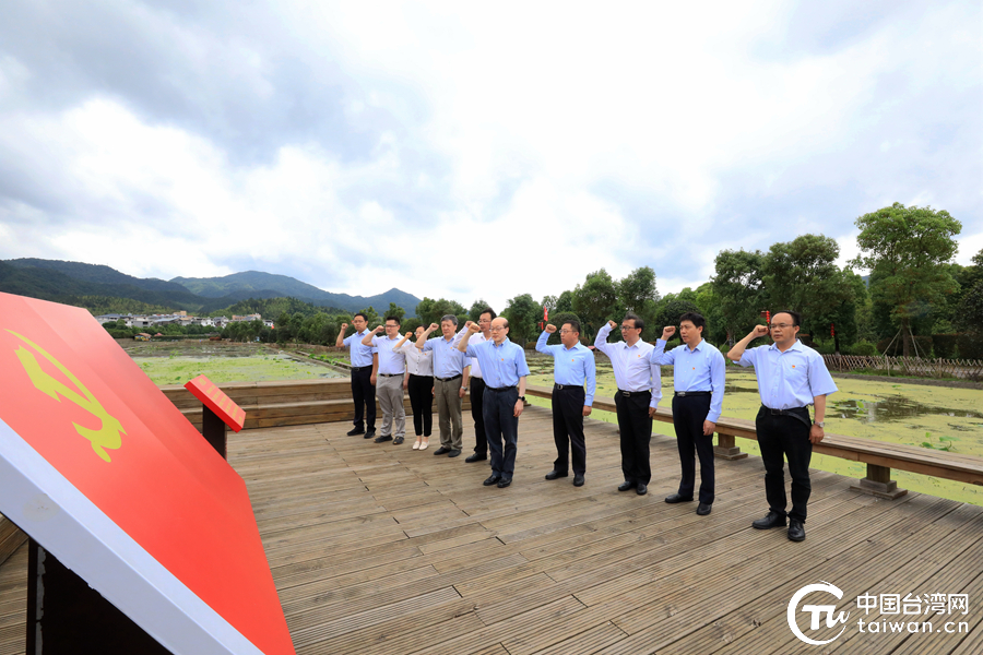 中央臺(tái)辦、國(guó)務(wù)院臺(tái)辦主任劉結(jié)一帶領(lǐng)調(diào)研組全體黨員重溫入黨誓詞。(中國(guó)臺(tái)灣網(wǎng) 尹賽楠 攝)