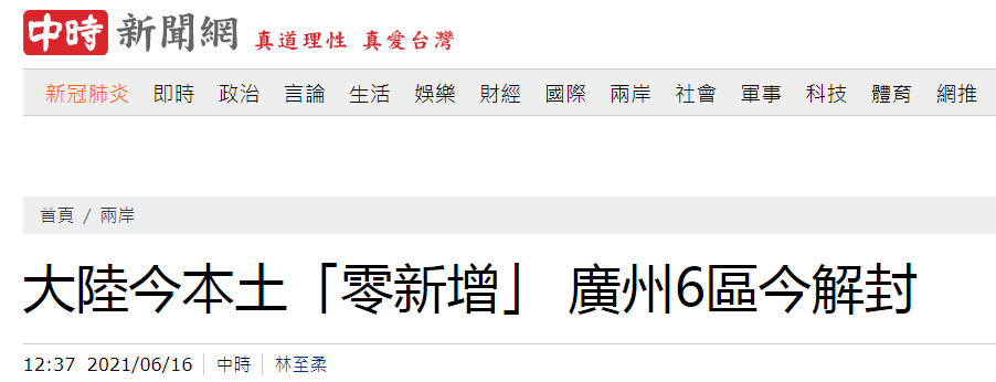 臺灣中時新聞網(wǎng)稱,大陸16日新增21例確診,均為境外輸入病例,本土“零新增”。廣州近日本土疫情嚴(yán)重,所幸15日并無再新增本土確診病例或無癥狀感染者。此外,廣州全市有6個封閉封控區(qū)域達到解封條件,并提出解封申請,經(jīng)專家評估,已獲廣州市防控指揮部同意。