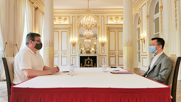 中國駐法國大使盧沙野近日接受法國《言論報》專訪。(圖片來源:中國駐法國使館)
