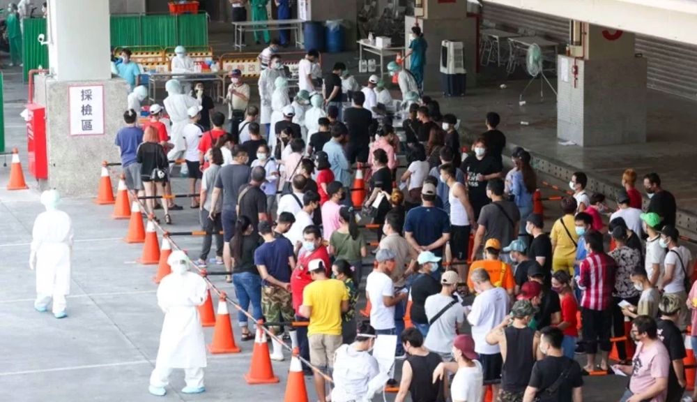 臺(tái)灣民眾大排長(zhǎng)龍進(jìn)行篩檢。圖片源自臺(tái)灣中時(shí)電子網(wǎng)