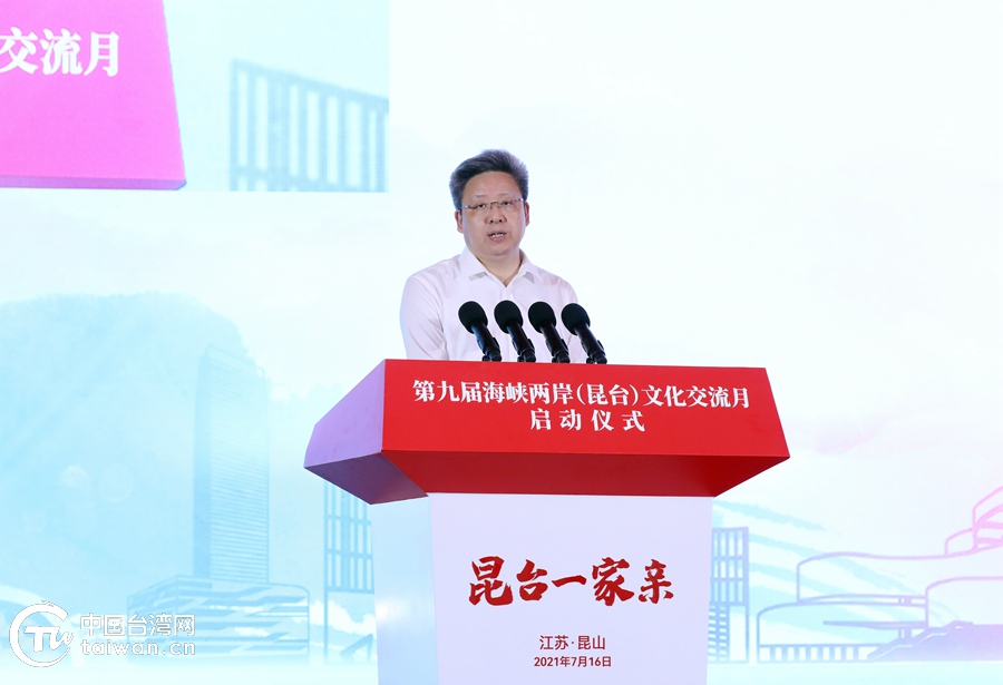 中共中央臺(tái)辦、國(guó)務(wù)院臺(tái)辦副主任龍明彪在致辭中表示,昆山作為臺(tái)胞聚集的重鎮(zhèn),近10萬(wàn)名臺(tái)胞臺(tái)屬在這里學(xué)習(xí)、工作、生活,其中包括約2萬(wàn)名臺(tái)灣青年、3700名就讀中小學(xué)和幼兒園的臺(tái)胞子女、500余對(duì)兩岸婚姻家庭等等,在深化兩岸民間融合發(fā)展方面有著強(qiáng)大的內(nèi)在需求。近年來(lái),昆山市委市政府深入貫徹落實(shí)“31條措施”、“26條措施”,出臺(tái)“昆山68條措施”和服務(wù)臺(tái)胞臺(tái)企20條新政、28條舉措,努力落實(shí)臺(tái)胞同等待遇,打造臺(tái)胞在大陸的“精神家園”。希望昆山在深化兩岸融合發(fā)展方面繼續(xù)大膽探索,支持、鼓勵(lì)在昆臺(tái)胞深度參與當(dāng)?shù)馗黜?xiàng)事業(yè),充分發(fā)揮經(jīng)濟(jì)發(fā)達(dá)、文化厚重的優(yōu)勢(shì),吸引更多臺(tái)灣青年到昆山實(shí)習(xí)、就業(yè)、創(chuàng)業(yè),著力把昆山打造成為臺(tái)灣青年了解認(rèn)識(shí)大陸經(jīng)濟(jì)社會(huì)發(fā)展、政治社會(huì)制度和治理效能的重要窗口,為兩岸同胞走近走親作出應(yīng)有的貢獻(xiàn)。