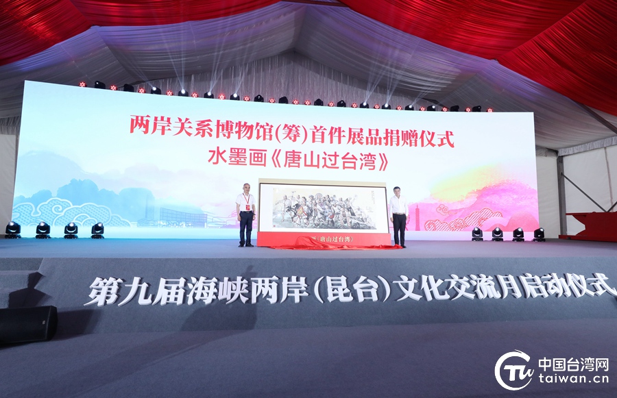 活動(dòng)中,海峽兩岸(昆山)青年傳統(tǒng)文化之旅、“花開(kāi)并蒂 騎游兩岸”捷安特騎行路線、昆山媽祖文化系列活動(dòng)和海峽兩岸(昆山)文體嘉年華集中發(fā)布。與此同時(shí),2021“并蒂同心映芳華”長(zhǎng)三角臺(tái)商臺(tái)胞攝影大賽和兩岸關(guān)系博物館展品征集活動(dòng)也于當(dāng)天同時(shí)開(kāi)啟。在活動(dòng)現(xiàn)場(chǎng),昆山媽祖文化交流協(xié)會(huì)常務(wù)副會(huì)長(zhǎng)孫德聰向兩岸關(guān)系博物館捐贈(zèng)首件展品——水墨畫(huà)《唐山過(guò)臺(tái)灣》。