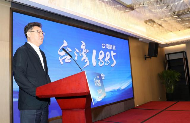 8月28日,電視連續(xù)劇《臺灣1885》出品人郭紹成在研討會開幕式上講話。